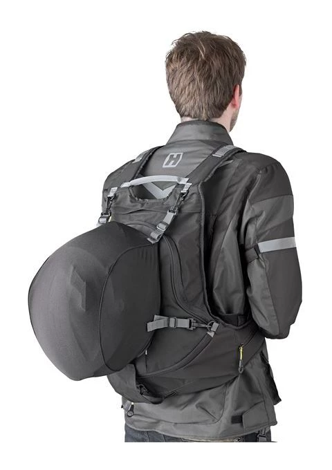 Expandable backpack with helmet removable helmet bag.